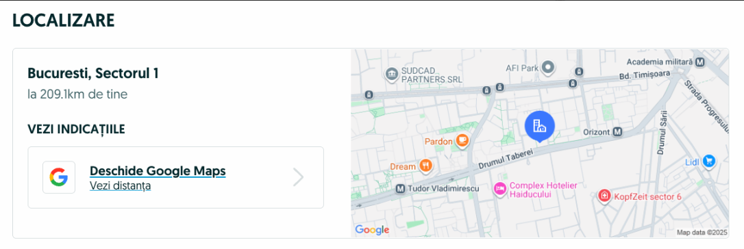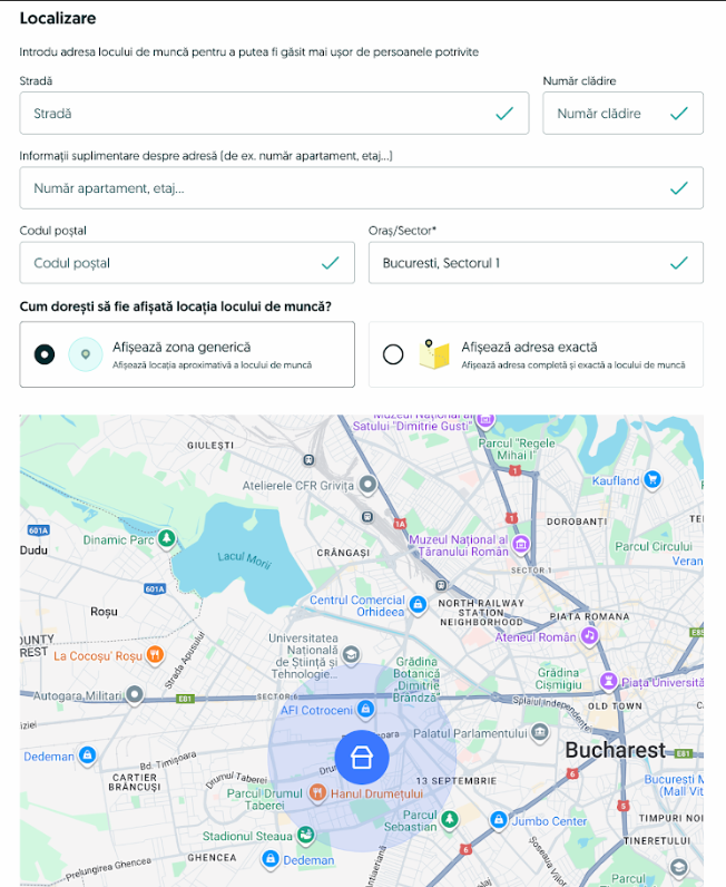Locația exactă (Locația exactă a locului de muncă din postul vacant) - o nouă funcționalitate în categoria Locuri de muncă care va afișa locația exactă a postului vacant pentru cei care caută pe site.